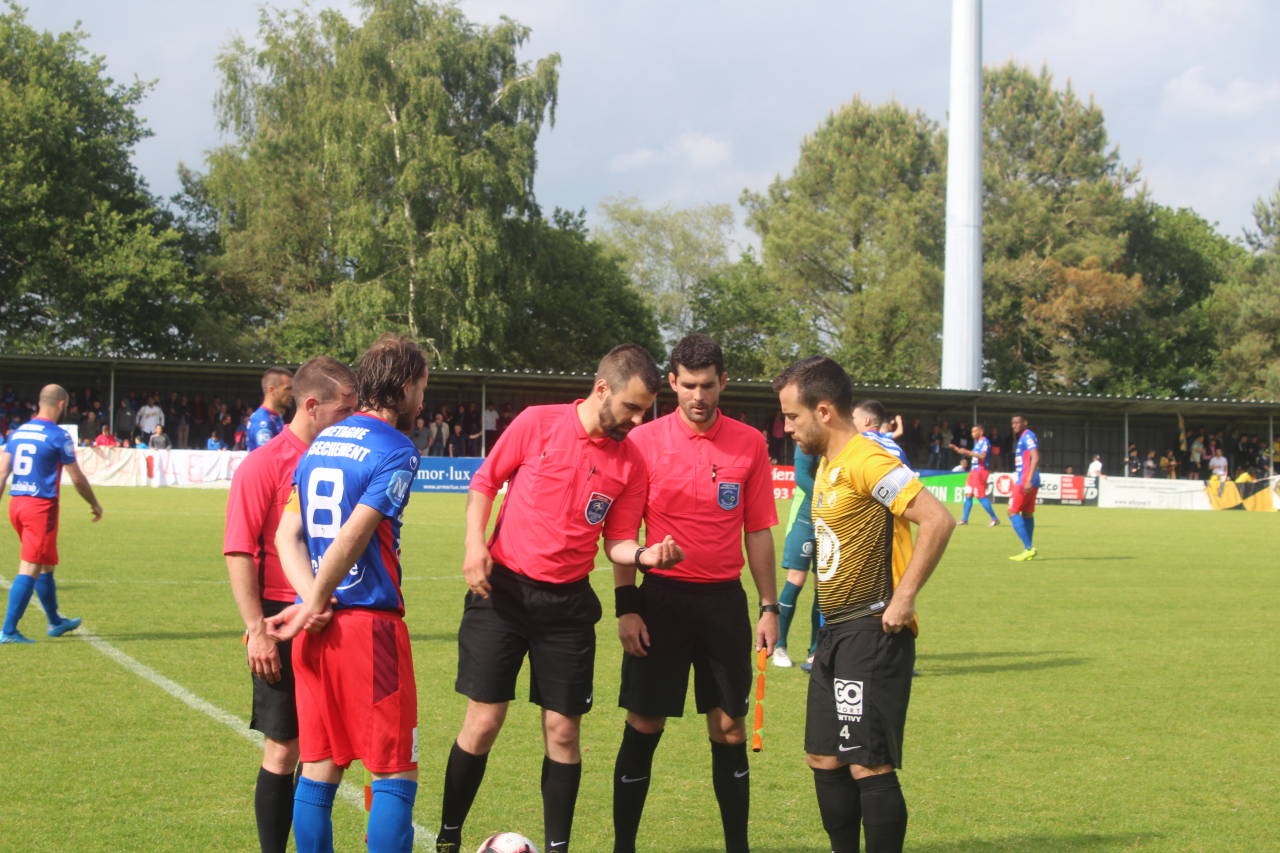 Brian Picard qui a été pourtant brillant comme les joueurs montagnards avait du mal comme ses camarades à cacher sa déception. Battus par une belle équipe du Stade Pontivyen les forgerons n’ont pas pu arracher un 36e maintien à l’échelon national. Ce qui n’est pas le cas du promu Pontivyen qui pour sa première année à ce niveau renouvelle son bail. Le mérite des pontivyens n’aura été que plus grand quand on sait qu’ils ont fait de surcroît un beau parcours en coupe de France, (les montagnards en savent quelque chose coupe et championnat ne font jamais bon ménage). S’il avait le triomphe modeste Philippe Le Brun était fier de ses joueurs « La saison a été très longue, et les organismes étaient fatigués, même si c’était un match couperet les joueurs n’ont rien lâchés ». Philippe Le Brun qui devrait à nouveau être l’entraîneur du stade la saison prochaine. Les joueurs montagnards n’avaient pas envie de se lancer dans la confidence à la fin du match l’un des grands absents à savoir Max Sébilleau confiait néanmoins « Qu’on se le dise La Montagne n’est pas mort, et comme elle l’a toujours fait elle va rebondir ». Dans un Mané Braz bien rempli les forgerons démarrèrent le match avec la peur au ventre si bien qu’ils se firent punir sur un tir d’Arnaud Le Sergent (9'). Appliqués les montagnards multiplièrent ensuite les occasions de buts, mais tombèrent sur un Malo Rolland en état de grâce. Le fils de l’ancien entraîneur de l’USMontagnarde Gilles Rolland se permit même le luxe de détourner un penalty de Vincent Gragnic (70'). L’échec montagnard était à demi atténué par le match nul de Lannion contre Pabennec ce qui fait que même un match nul n’aurait pas été suffisant « Je ne peux rien reprocher à mes joueurs qui ont tout donné au cours de ce match. On a raté le coche bien avant. On avait six finales à disputer auxquels il faut ajouter l’avantage de terminer notre saison à domicile on ne l’a pas fait » constatait l’entraîneur montagnard Laurent Bourmaud
